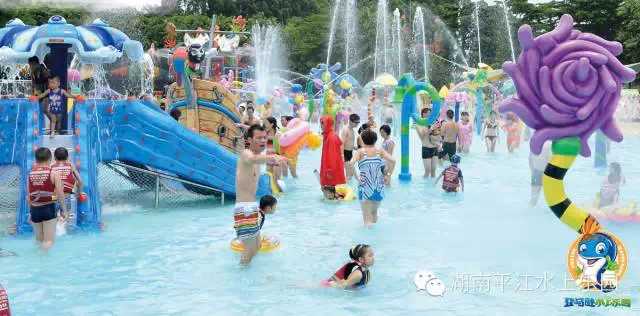 儿童嬉戏池由水迷宫、亲子滑道以及嬉水区三大部分组成,由各式各样、色彩缤纷的卡通人物、七彩水果、美丽花朵、精灵海鱼组成四个特效水上主题区,爸妈孩子一同玩水乐不可支,其乐融融。